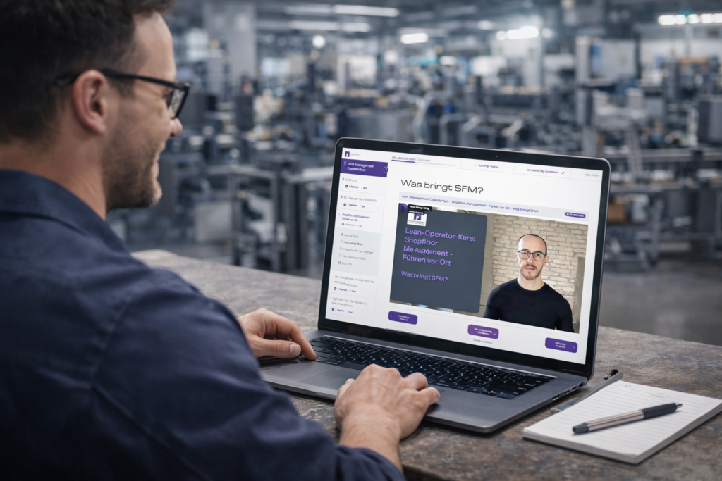 Lernen, wann und wo es passt – ganz ohne Reisekosten. Mit unseren Videokursen zu Lean Management und Digitalisierung entwickelst du dein Team flexibel und praxisnah weiter.